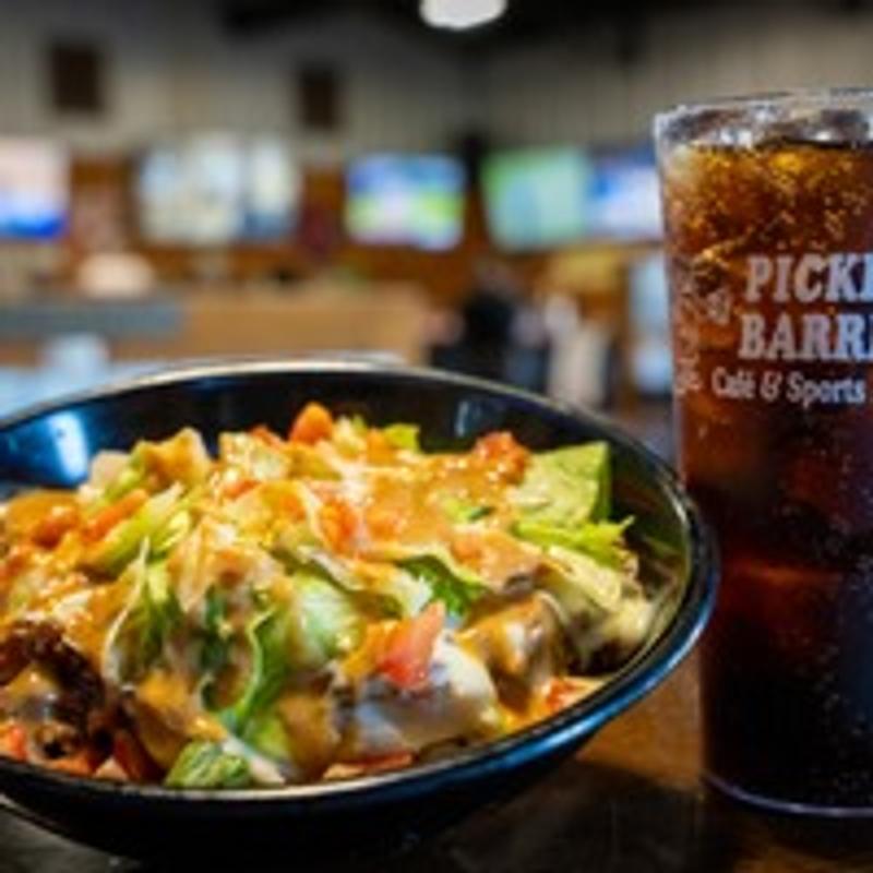 Choose a Side: Cheese Grits | Cheesy Potato Soup | Chili |1/4 lb Beer Battered Fries | 1/4 lb. Naked Fries | Fried Okra | Small Tossed Salad | Caesar Salad | Pasta Salad | PBC Baked Beans | PBC Power Veggies | Kettle Chips | Baked Potato with B & SC | Baby Greek Salad +$1.50